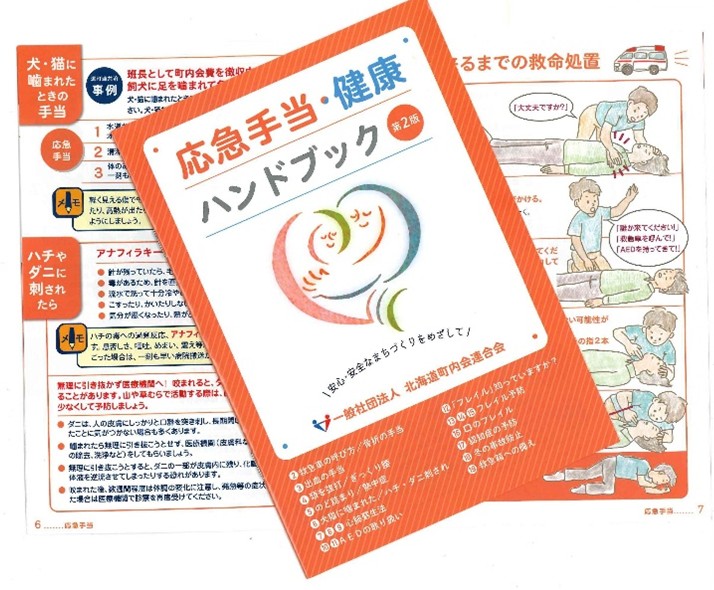 また、自主防災組織活動の一環として、加入全世帯に「応急手当ハンドブック」を配りました。令和2年にも防災ハンドブックとともに配布しており、改訂版があったことから取り組んだものです。