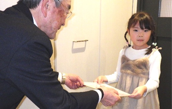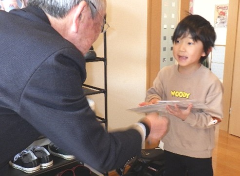 今回対象となった新入学児童は3名で、みなさん贈り物に大変喜んでいました。