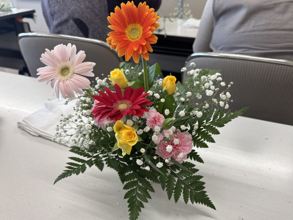 今年は、町会女性部連絡会の副会長で「花のしもむら」の店主であります能村英子氏を講師に、フラワーアレンジ体験を研修会事業として初めて行いました。