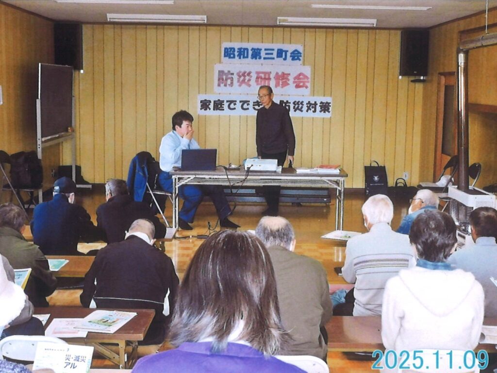 昭和第三町会(会長 西館一、会員174世帯)は、11月19日昭全協会館で令和7年度「防災研修会」を開催しました。
